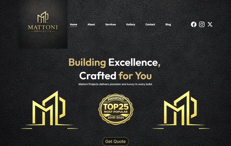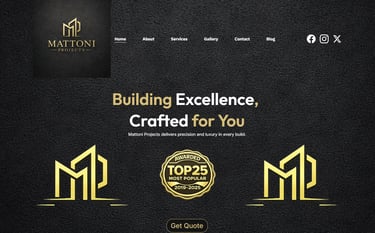 A modern, high-end website designed for Mattoni Projects to showcase their professional construction services, including new builds, alterations, additions, and full turnkey projects. The site features a sleek dark luxury design with gold accents, fully responsive layouts for mobile and desktop, and strategically implemented SEO to improve visibility. Built with a strong focus on trust, usability, and lead generation, the website integrates seamless contact options and clear service presentation to convert visitors into clients.