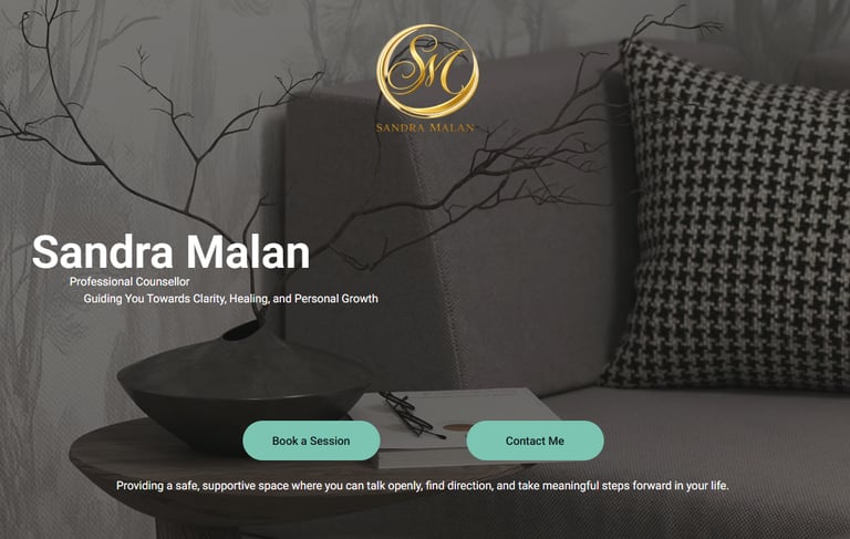 A modern, calming counselling website designed for Sandra Malan to create a strong and trustworthy online presence. The site focuses on clear service presentation for both adults and children, a user-friendly layout, and seamless contact options, including WhatsApp integration. Built with a clean, supportive design style and fully optimised for mobile and desktop, the website is structured to guide visitors comfortably while encouraging enquiries and client engagement.